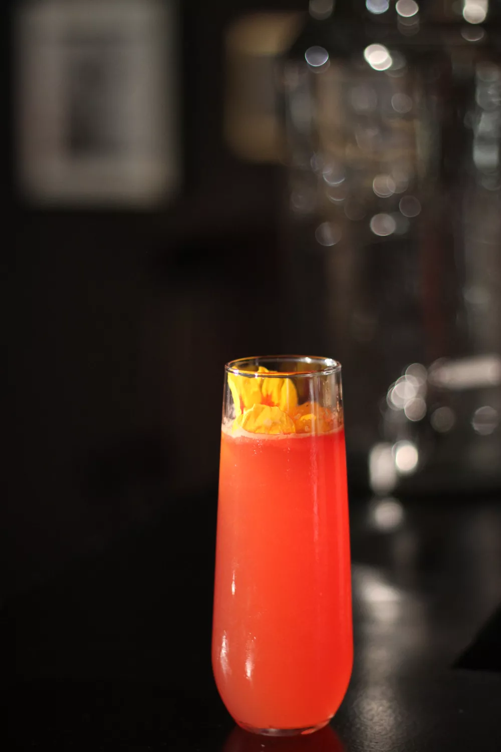 Garneer de cocktail met een eetbaar bloemetje.