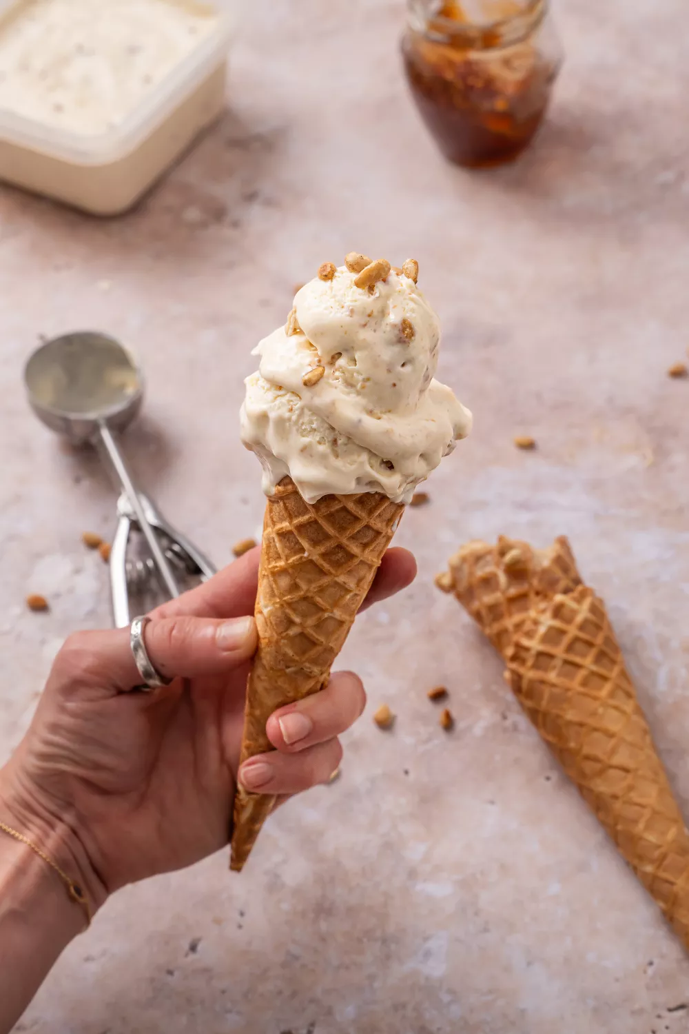Serveer het pijnboompittenijs op een hoorntje of in een mooie coupe en maak af met wat extra geroosterde pijnboompitten.