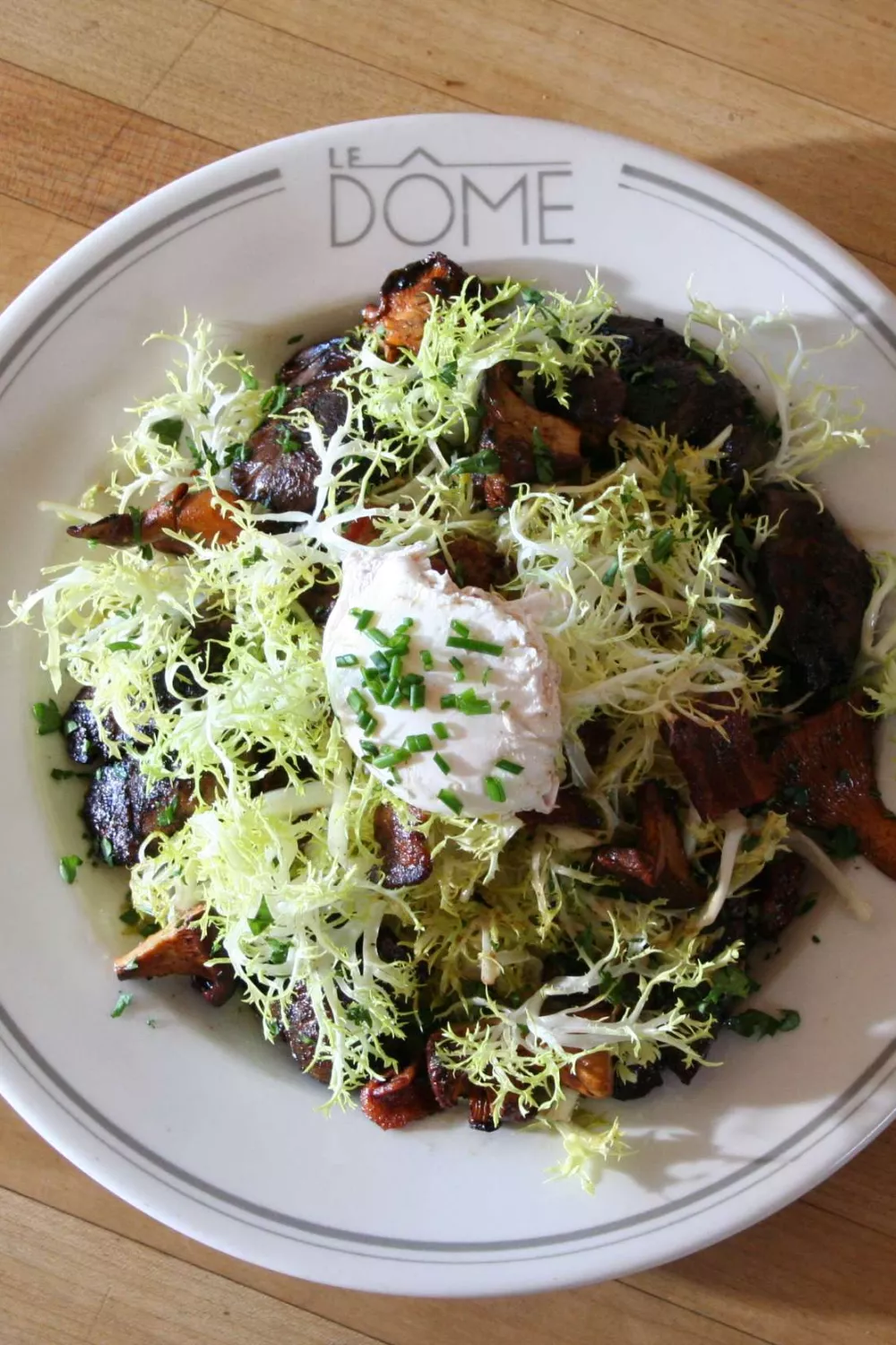 Een robuuste salade met gebakken kippenlevertjes, krokant gerookt spek en sappige cantharellen op een bed van krulandijvie. Met een pittige mosterdvinaigrette op basis van rode wijnazijn en olijfolie en een zacht gepocheerd eitje is dit hartige gerecht ideaal als herfstige lunch of lichte avondmaaltijd. Snel te bereiden en perfect voor wie houdt van volle smaken, klassieke bereidingstechnieken en seizoensingrediënten.