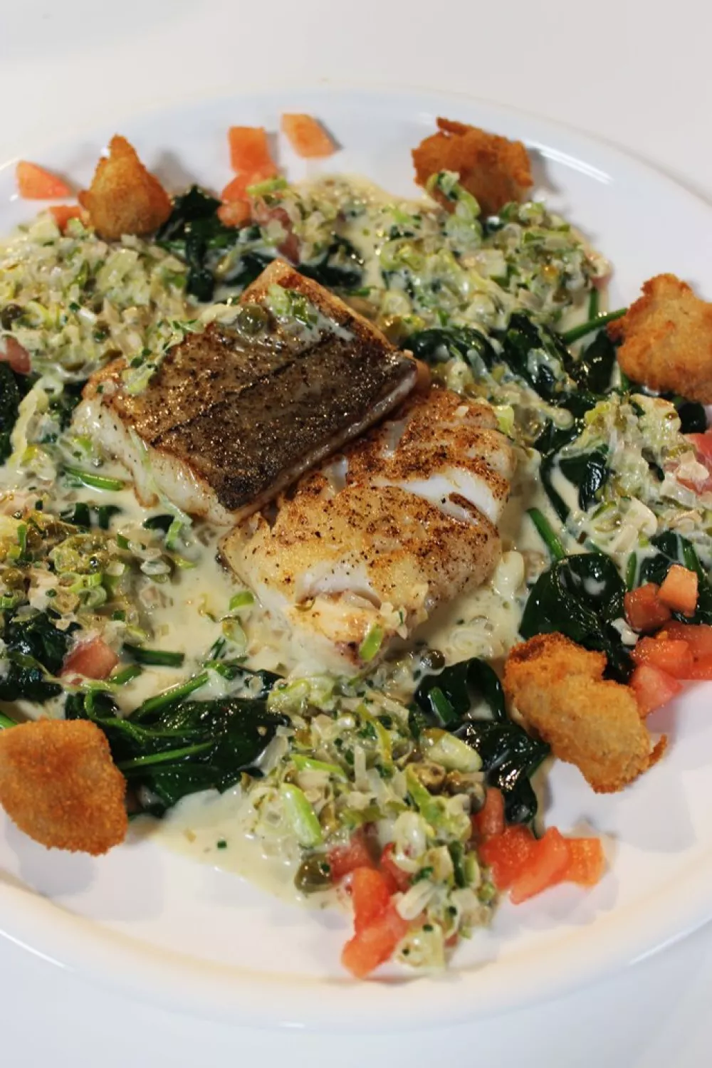 Verrassend feestelijk visgerecht waarin zachte schelvisfilets op een bed van romige spinazie liggen en worden overgoten met een frisse roomsaus op basis van witte chocolade, sjalot en kappertjes. Krokante kroketjes van schelvislever zorgen voor hartige crunch, terwijl limoen en tomatenblokjes lichte zuurheid en frisheid brengen. Perfect voor een lente of zomer diner of een bijzonder etentje.