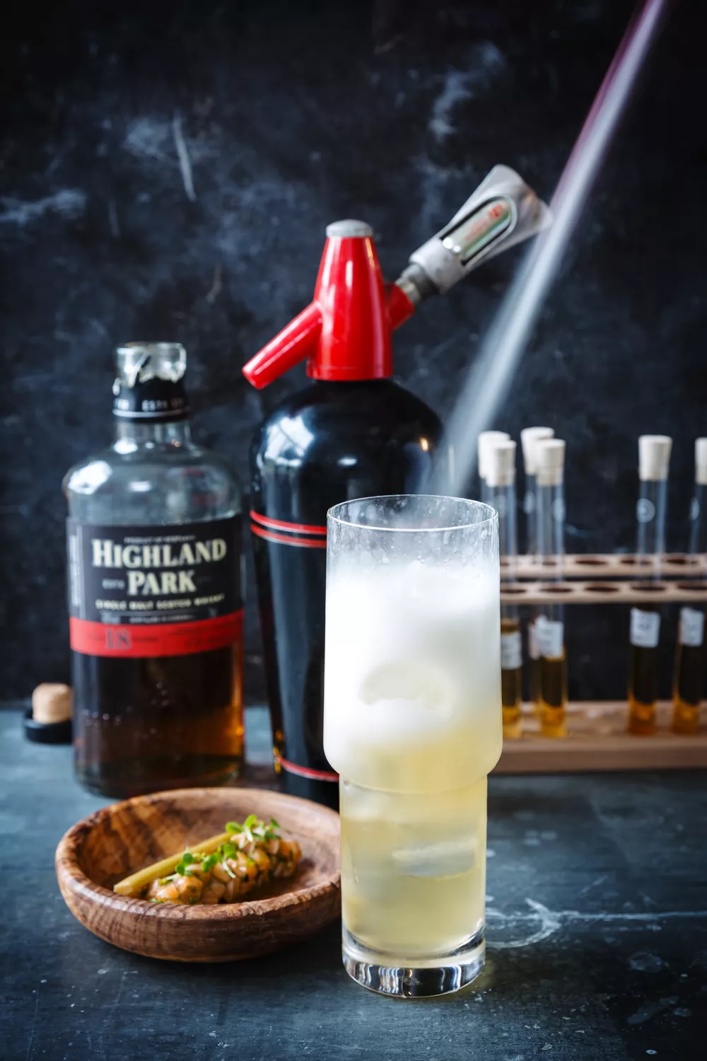Scotch elderflower soda & Tartaar van rabarber en zalm
