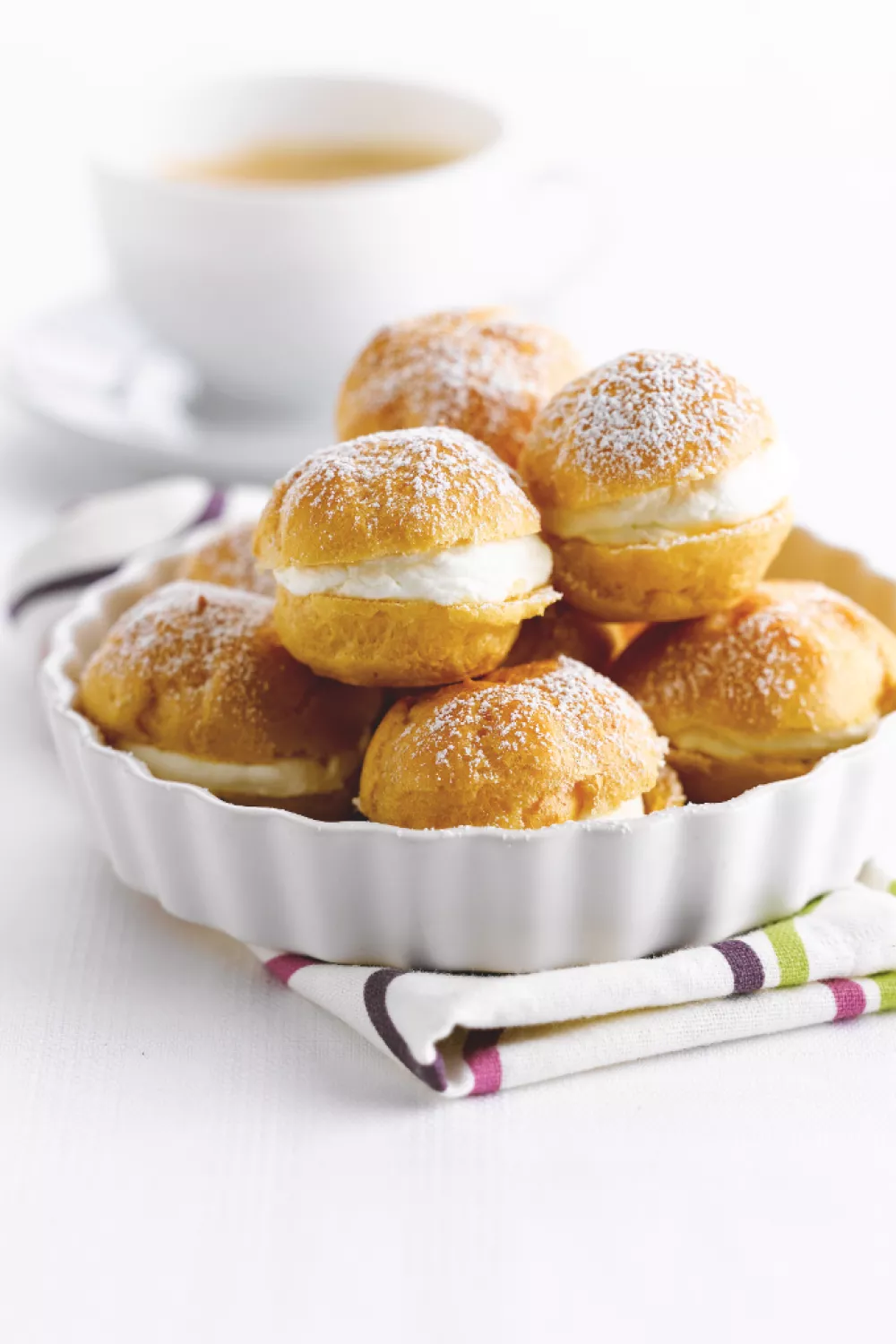 Zachte, luchtige slagroomsoezen met een goudbruin korstje en romige vanillevulling: klassiek chouxdeeg gemaakt met melk, boter en eieren, opgespoten en in de oven gebakken. Ideaal als feestelijk dessert, bij de koffie of voor een zomerse high tea; vul ze met versgeklopte slagroom en bestrooi met poedersuiker.