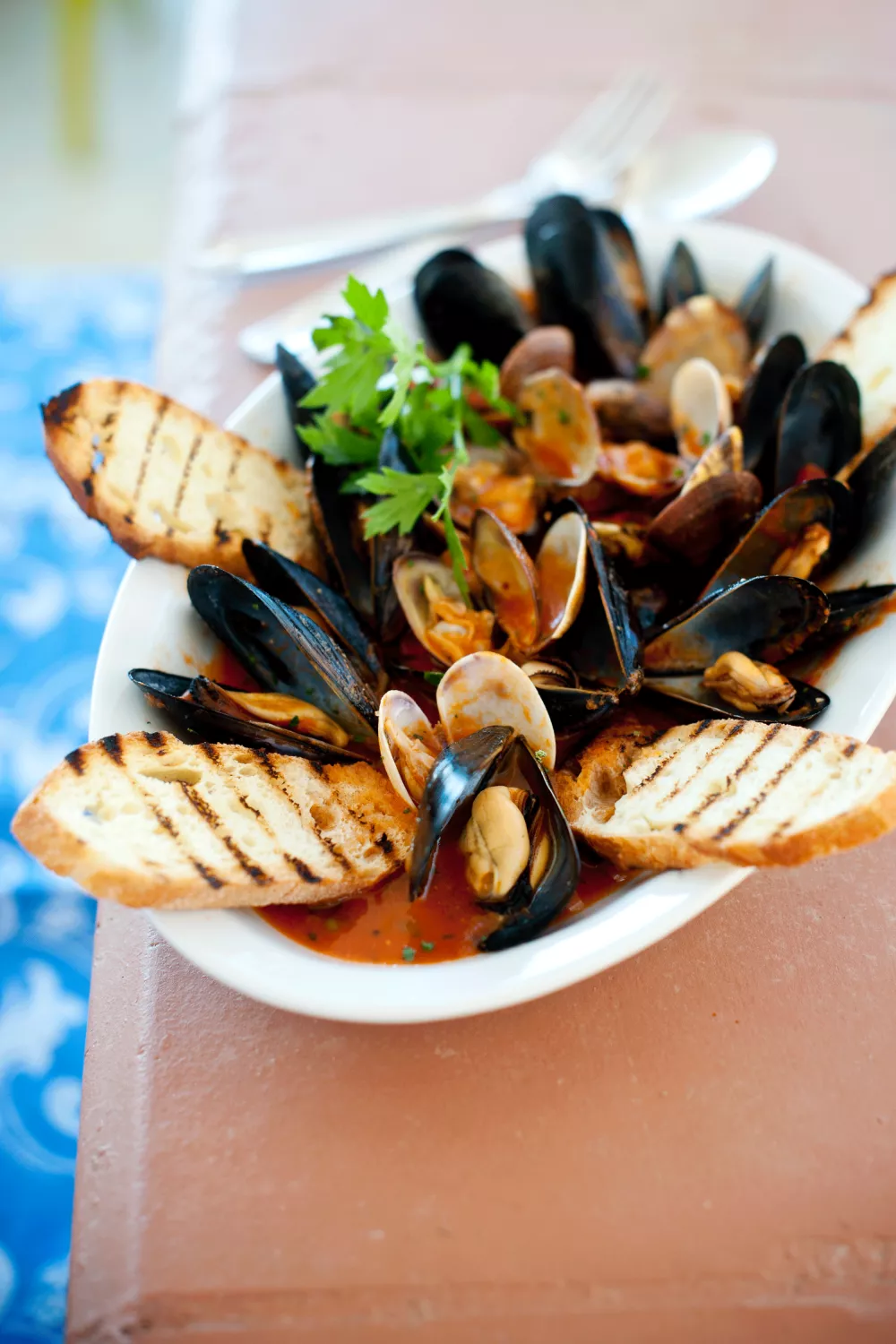 Een lichte, smaakvolle soep met mosselen en venusschelpen waarin tomaat, witte wijn en visbouillon samen een frisse, ziltige smaak geven. De schelpdieren worden kort gestoomd in een aromatische bouillon van ui, knoflook en selderij en afgemaakt met fijngehakte peterselie voor een delicate, mediterrane toets. Perfect als zomers voorgerecht of als verwarmende avondmaaltijd voor liefhebbers van zeevruchten.