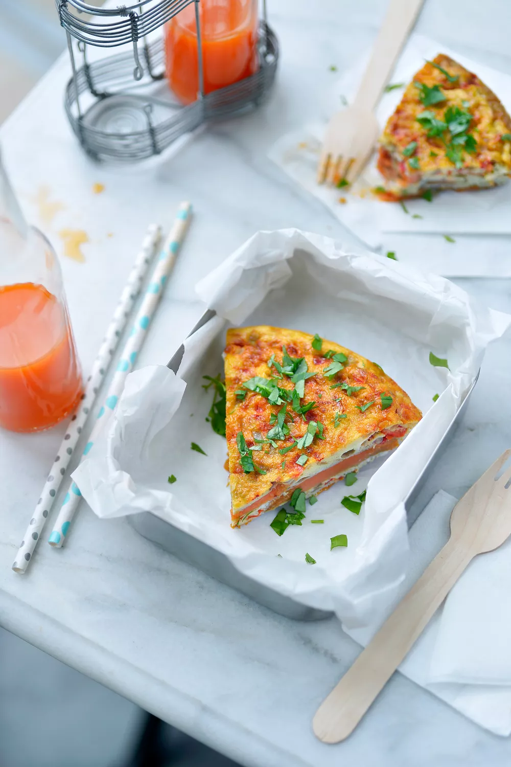 Een luchtige Spaanse tortilla met zoete aardappel en zoete puntpaprika waarin zachte eieren en frisse platte peterselie samen een warme, hartige smaak geven. De zoete aardappel wordt kort gestoomd en ui en paprika worden zacht gestoofd in olijfolie, waarna alles in een ovenschaal wordt gebonden tot goudbruin. Heerlijk als brunch, tapas of gezellig herfstig familiediner.