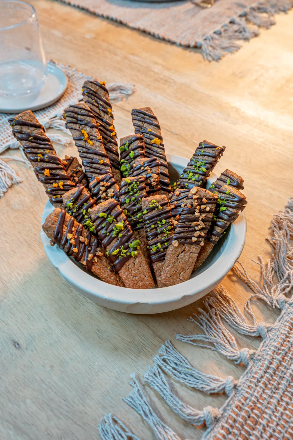 Knapperige speculaas koekjes met warme speculaaskruiden en frisse sinaasappelzeste, afgewerkt met rijke chocolade en krokante bresilienne nootjes. Dit rustieke bakrecept combineert eenvoudig kneden en uitrollen met professioneel chocoladetempereren au bain marie voor mooie chocolade lijntjes en knapperige textuur. Heerlijk als herfstige snack, feestelijk dessert of bij de koffie tijdens de feestdagen.