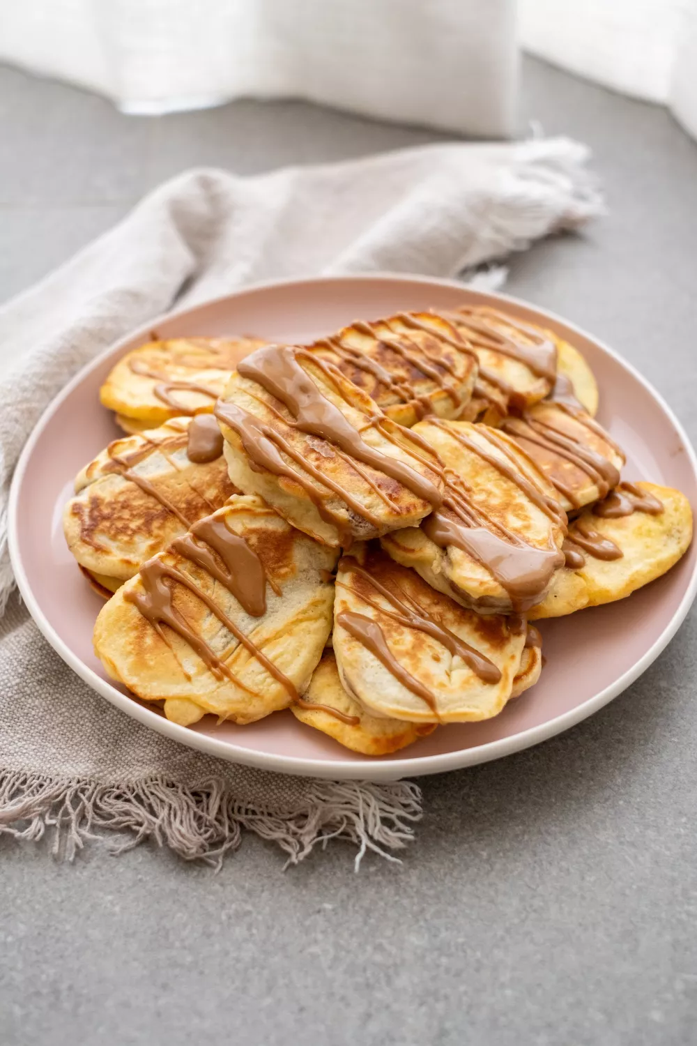 Schik de pannenkoekjes op een bord en werk nog af met extra speculaaspasta.