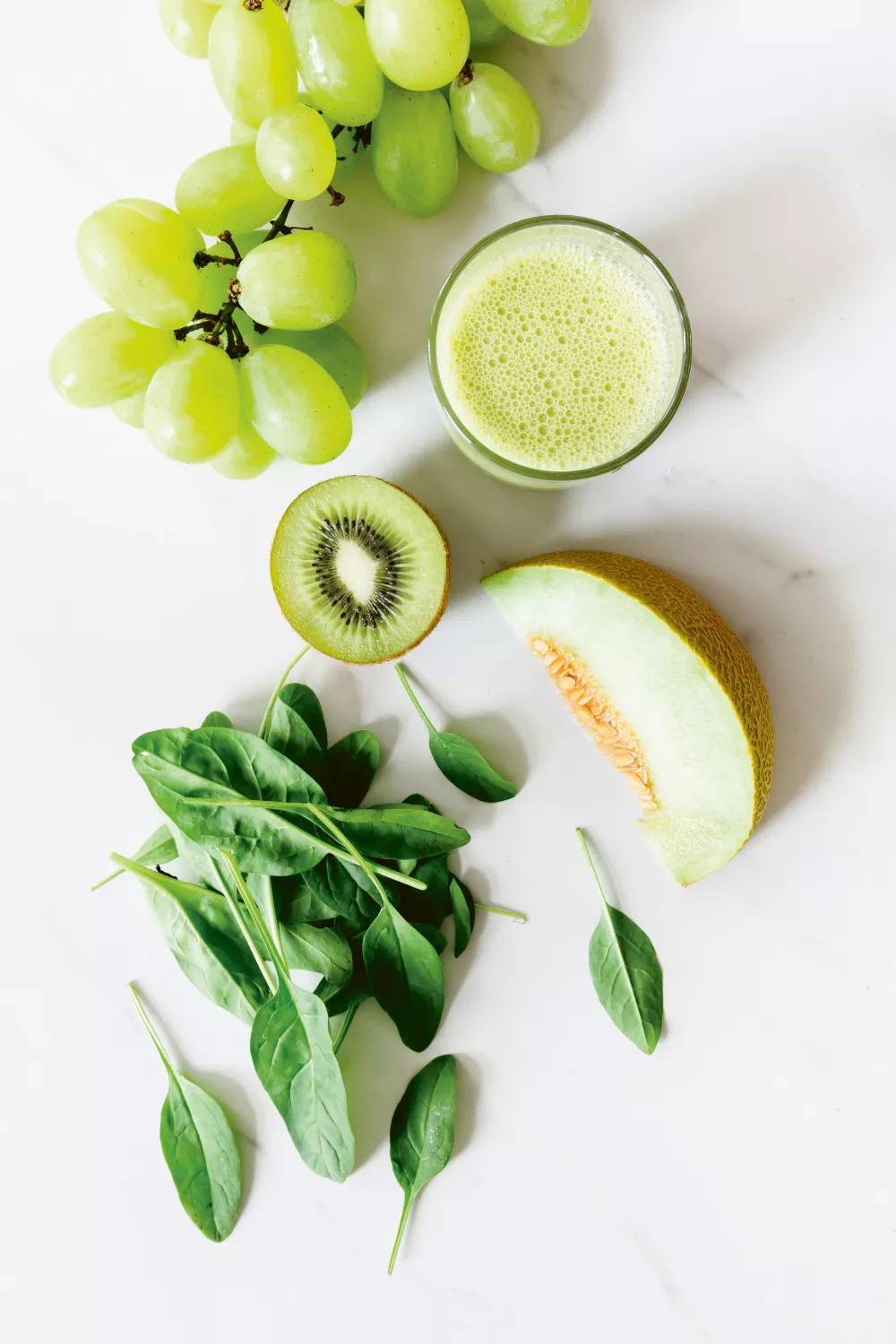 Fris en fruitig groen sapje met romige spinazie, sappige meloen en een verkwikkend vleugje verse munt. Kiwi en pitloze groene druiven zorgen voor natuurlijke zoetheid; alles kort in de blender tot een zijdezachte smoothie voor een snelle, rauwe bereiding. Perfect als gezond ontbijt, verfrissend tussendoortje in de zomer of lichte detox na een zware maaltijd.