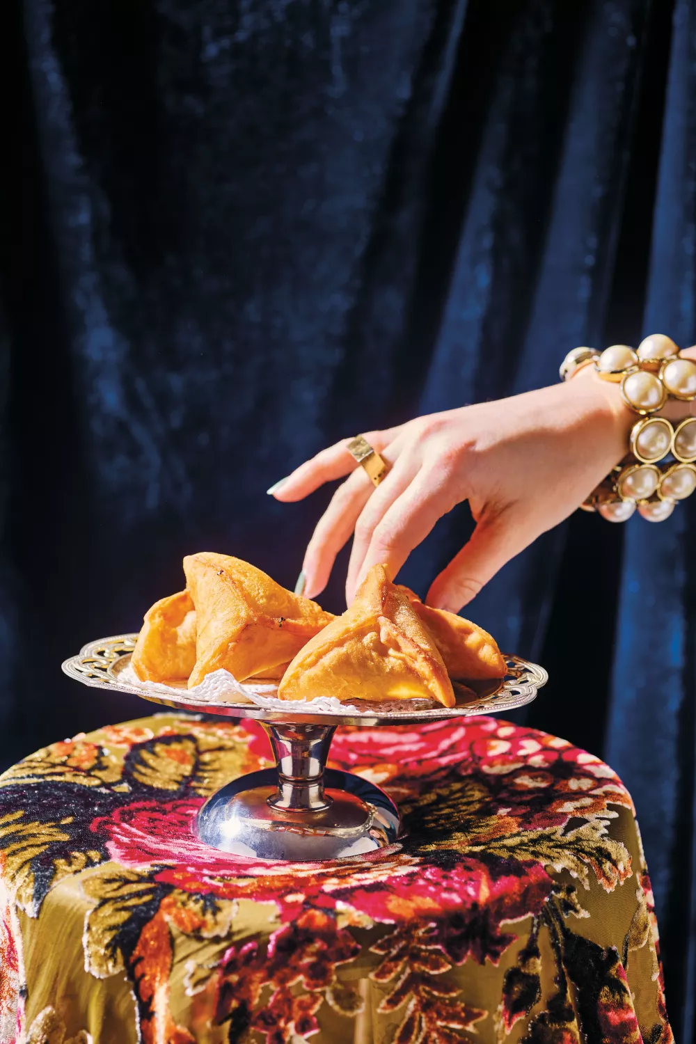 Breng 2 kanten naar elkaar toe en knijp dicht. Breng de derde kant omhoog zodat het lijkt op een driehoek en knijp om goed te sluiten. Leg op de bakplaat.