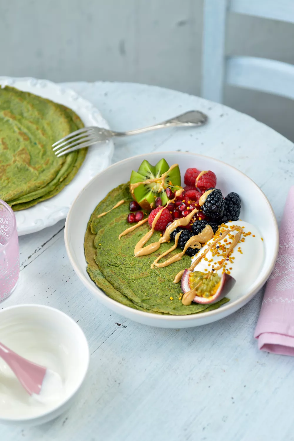 Stappenplan om recept “Spinaziepannenkoeken met kwark en fruit” te bereiden