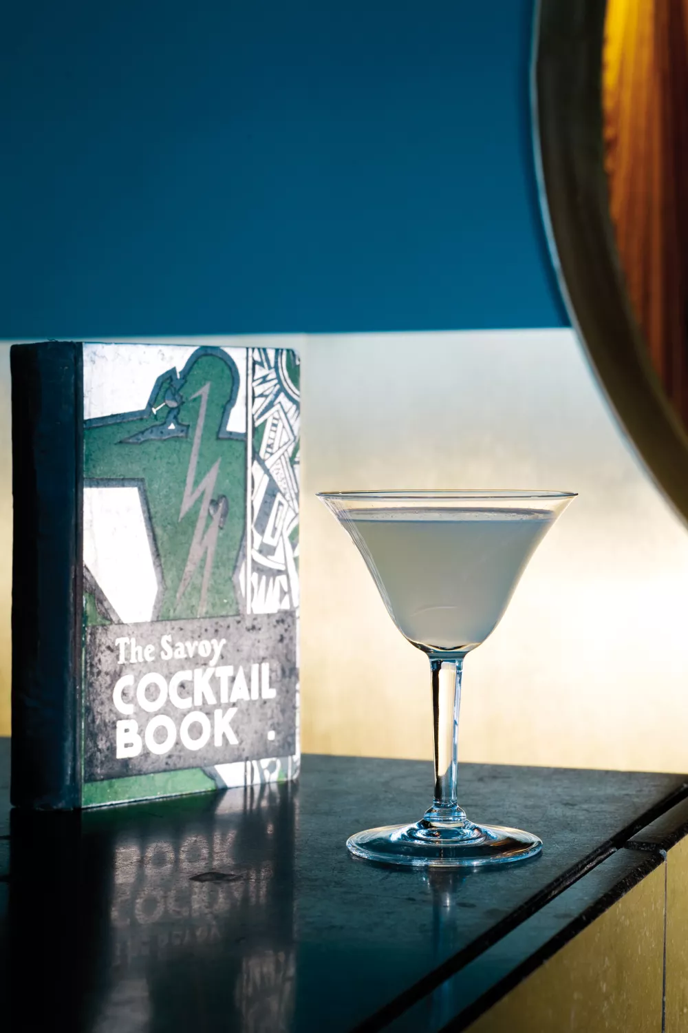 Sluit de Boston shaker en shake krachtig. Verwijder het ijs en de absint uit het delmonicoglas, strain de cocktail dubbel via een fijne zeef in het antieke glas.