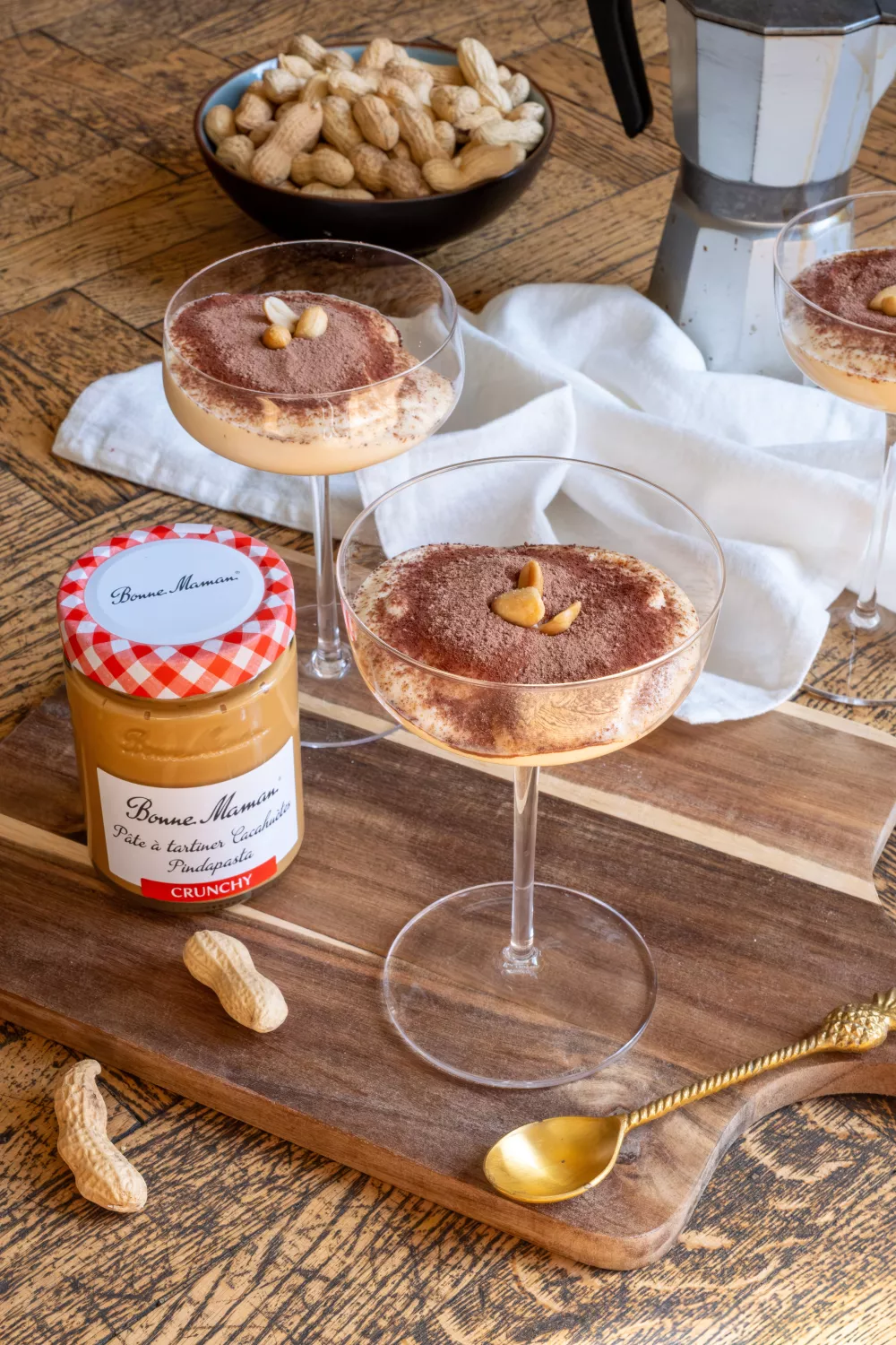 De Italiaanse klassieker in een verrassend jasje: deze tiramisu met crunchy pindakaas volgens Wim Ballieu combineert romige mascarpone met de volle smaak van Bonne Maman crunchy pindapasta. Laagjes lange vingers, espresso en cacao worden afgewisseld met een fluweelzachte pindacrème en een krokante toets van gezouten pinda’s.