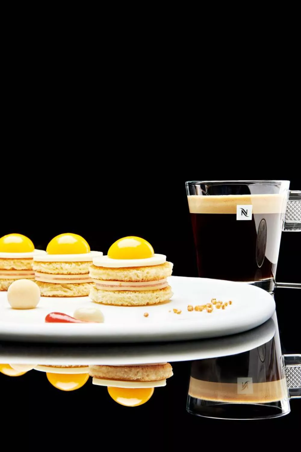 Hartige briochebroodjes met ham en gesmolten kaas, krokant gebakken in geklaarde boter en warm uit de oven. Een verrassende twist is het romige ijs van spek en eieren dat de zoute tonen verdiept, terwijl mini spiegeleitjes voor extra textuur en charme zorgen. Perfect als luxe brunchgerecht of borrelhapje in elk seizoen, afgewerkt met zure room, limoen en erwtenscheuten.