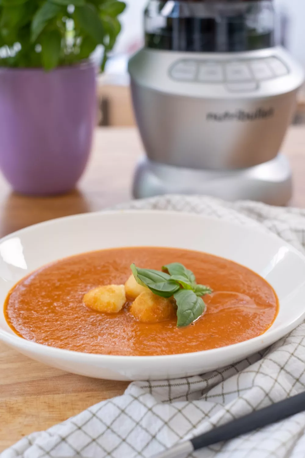 Romige tomatensoep vol geroosterde kerstomaatjes, look en rode ui, verrijkt met balsamico en Italiaanse kruiden. De soep wordt glad gepureerd in de blender en krijgt extra diepte door groentebouillon, terwijl mozzarellaballetjes in een krokant laagje bloem, ei en paneermeel goudbruin worden gebakken. Heerlijk als troostrijk doordeweeks gerecht of als smaakvol voorgerecht bij een gezellig diner in lente en zomer.