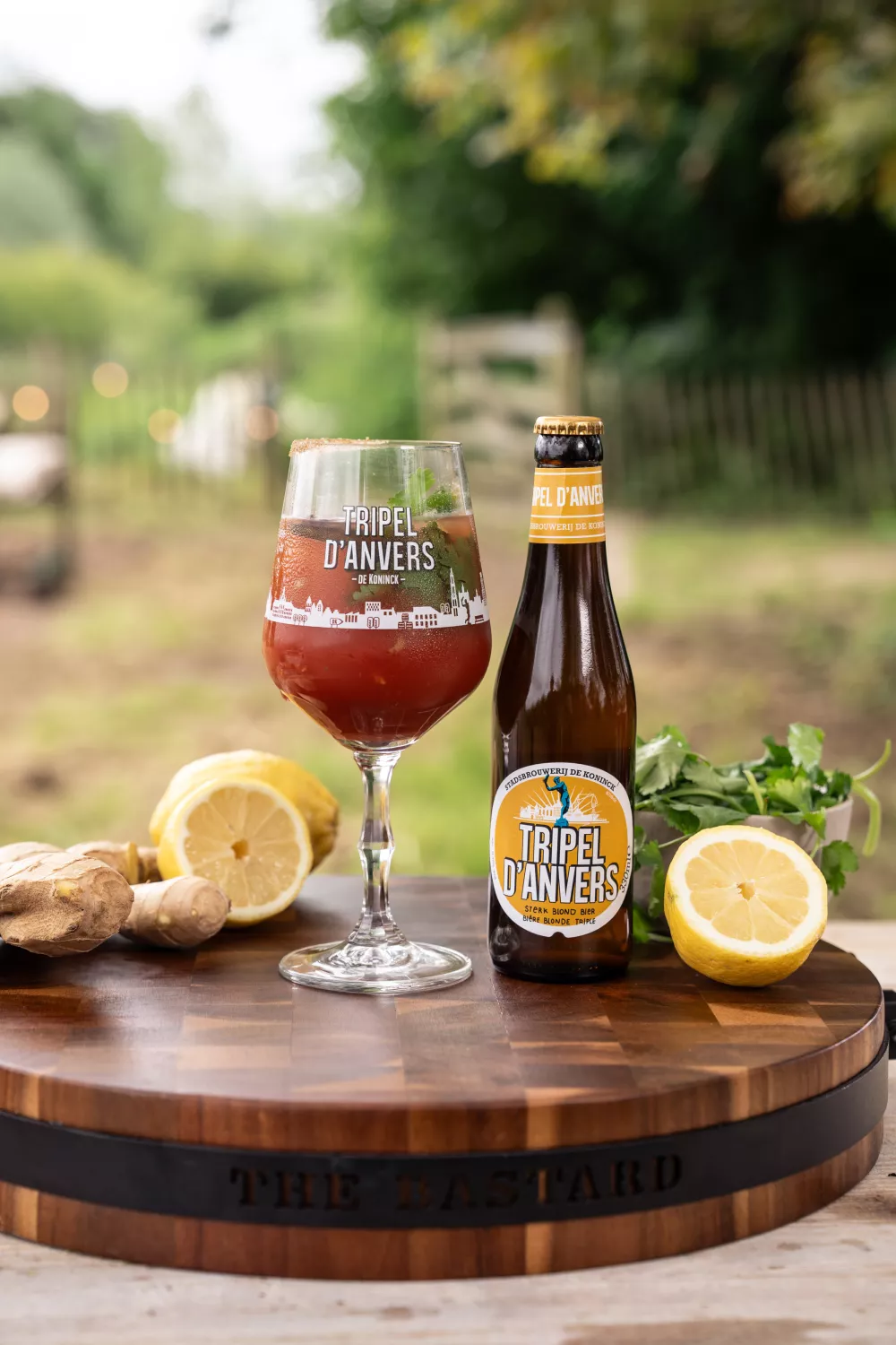 Deze Triple Bloody Mary Danvers combineert het hartige van tomatensap en selderijzout met de pittige kick van gember, Tabasco en Worcestershiresaus, en krijgt door Tripel d'Anvers een verrassende bierachtige twist. Grill de limoenschijfjes en werk de glazen af met een zoute rand voor een zomerse BBQ, brunch of robuuste borrel.