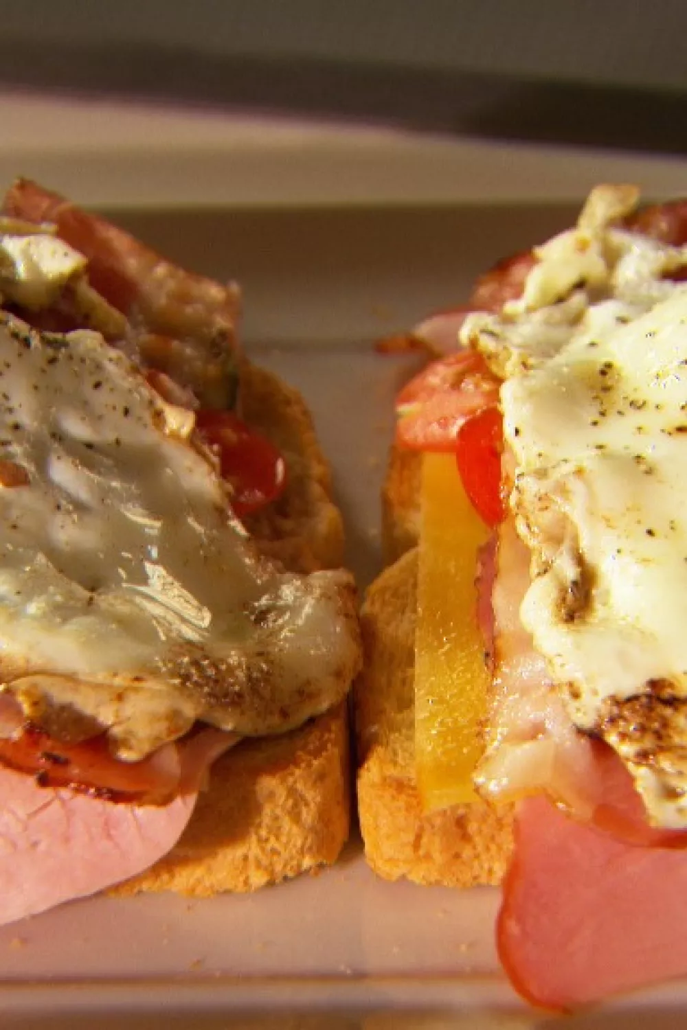 Deze luxe uitsmijter combineert krokant geroosterd wit brood met smeltende belegen kaas, sappige ham en knapperig ontbijtspek voor een stevige ontbijtbeleving. Met romige gebakken eieren, zoetzure augurkjes en frisse kerstomaatjes is het ideaal voor een vullende brunch of weekendontbijt. Simpel te maken en rijk van smaak dankzij bakken en toasten.