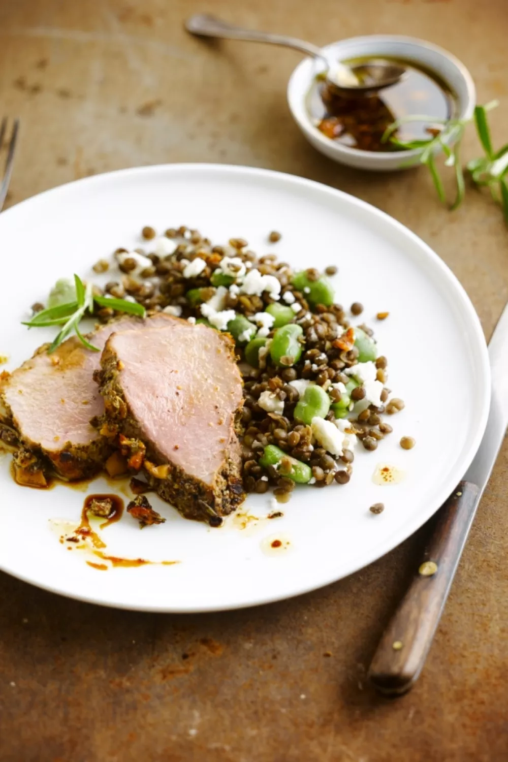 Stappenplan om recept “Varkensgebraad met mosterdkorst en peulensalade” te bereiden