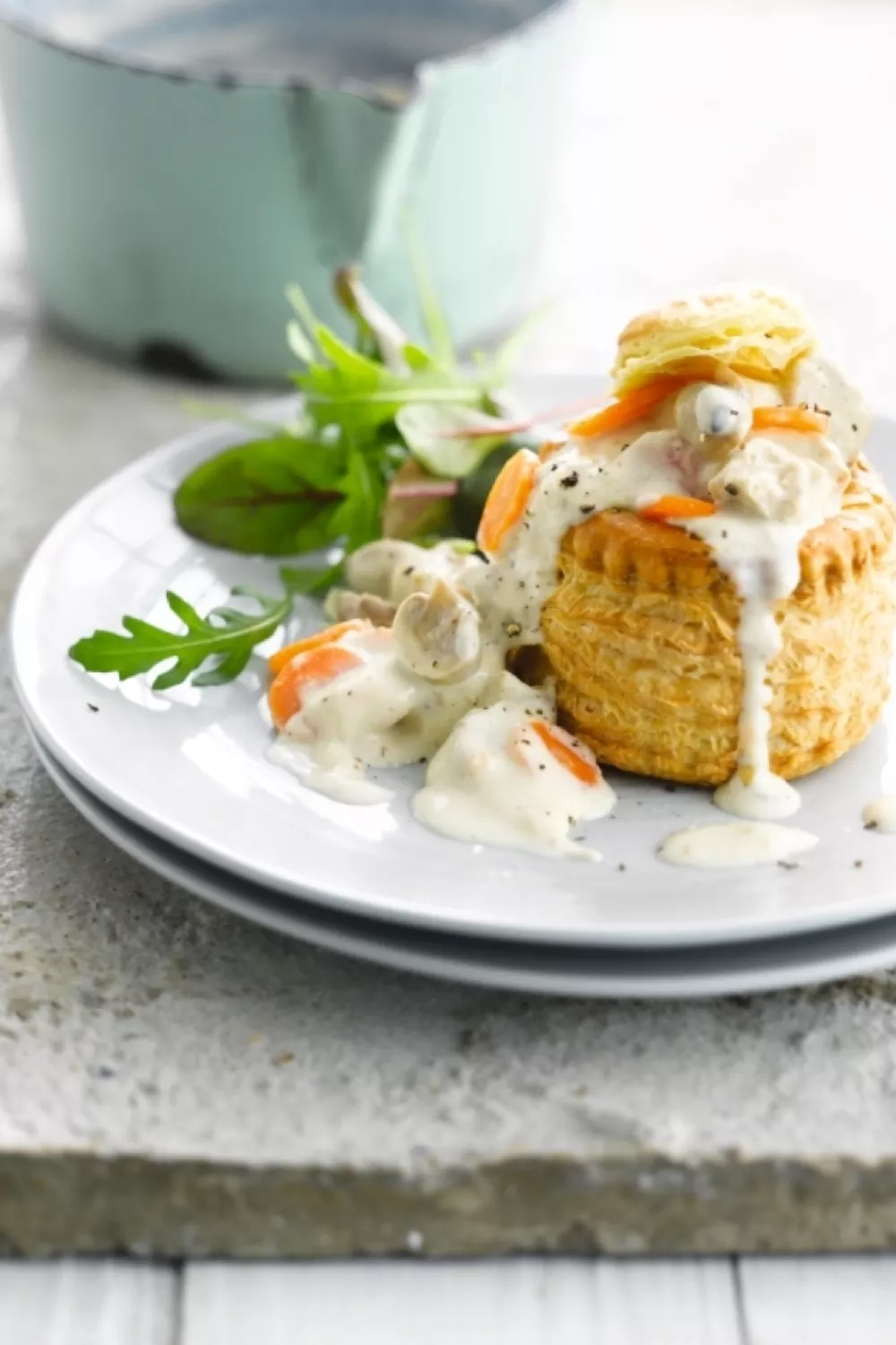 Romige, kruidige koninginnehapjes met quornblokjes, champignons en wortel geven een hartige twist aan klassieke pasteitjes. De vulling wordt eerst gebakken en daarna zachtjes ingedikt met melk en sojaroom en op smaak gebracht met kerrie en citroen zodat elk videekoekje rijk gevuld wordt. Makkelijk te bereiden en ideaal voor een feestelijke borrel of een verwarmende herfstlunch.