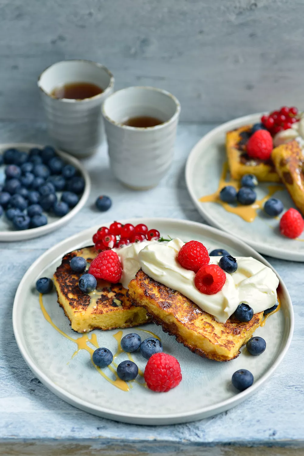Romig verloren brood van rozijnenbrood, in een eiermengsel met een vleugje kaneel gedompeld en goudbruin gebakken in de pan, brengt warme huiselijke smaken op tafel. Serveer met vanillegeroerde platte kaas, vers rood fruit en een drupje dulche de leche voor een romige zoetheid en fris contrast. Perfect als ontbijt, gezellige brunch of zomers dessert.