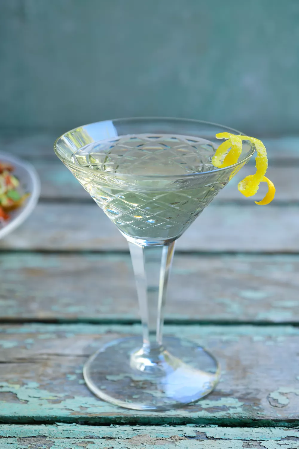 Een frisse, elegante martini met gin en een scheutje kinawijn, subtiel aangevuld met wodka en een knisperende citroenzeste. Door zacht te roeren met ijs krijgt de cocktail de juiste verdunning en zijdezachte textuur, ideaal als aperitief bij een borrel of zomerse avond. Serveer in een voorgekoeld martiniglas voor een klassieke, verfijnde sfeer.