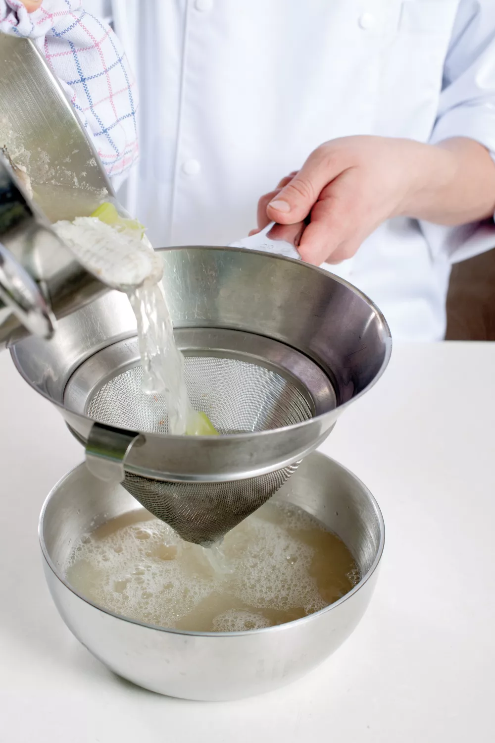 Schuim de onreine delen aan de oppervlakte af. Draai het vuur lager en laat alles zonder deksel 20 à 30 minuten sudderen.