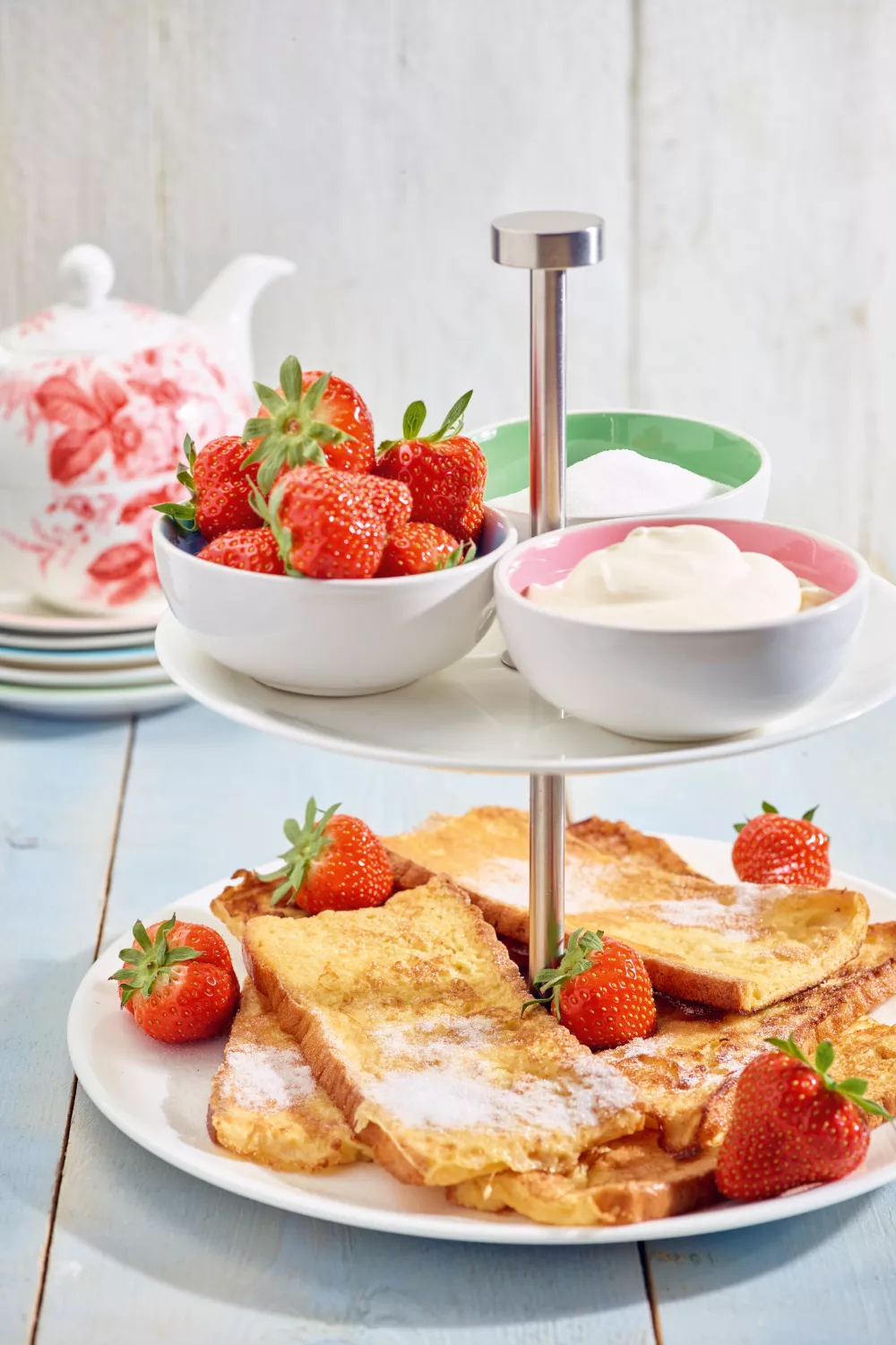 Warm, romig en licht krokant: deze wentelteefjes worden in een vanillecustard van melk, eidooiers en roompoeder gedoopt en in de pan goudbruin gebakken. Serveer ze als rijk ontbijt of zomerse brunch met een lepel zure room, kristalsuiker en verse aardbeien voor een frisse tegenhanger. Een klassiek, snel gerecht met wit brood en intens vanillearoma dat perfect past bij luie weekendochtenden.