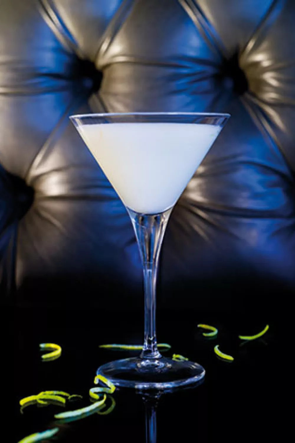 Rasp fijne sliertjes van de citroenschil over de cocktail.
