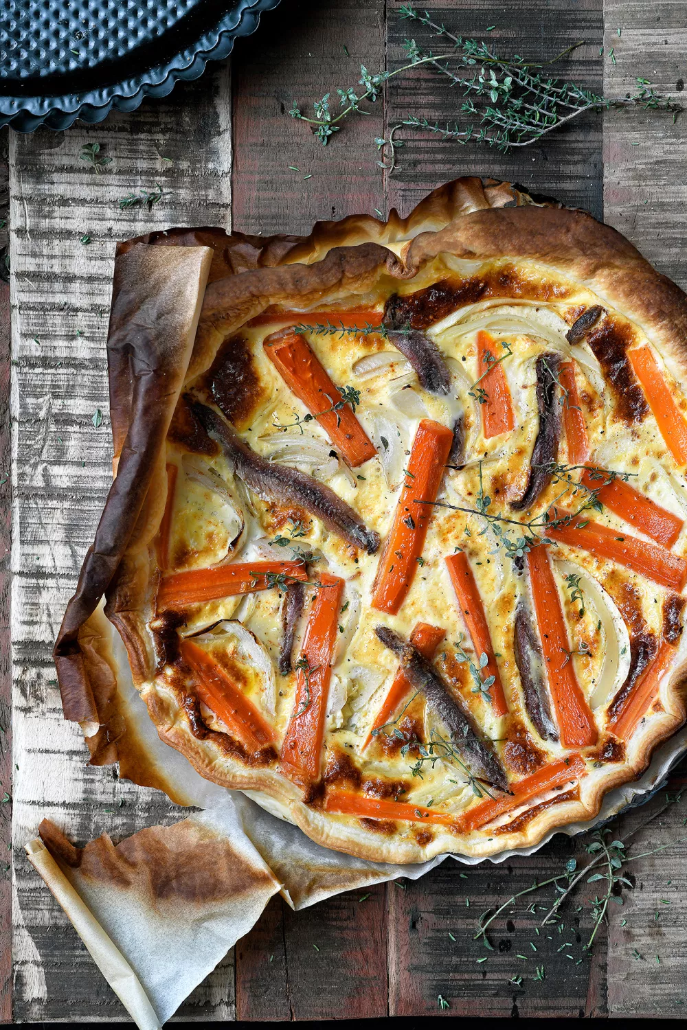 Stappenplan om recept “Winterse wortelquiche met ansjovis” te bereiden