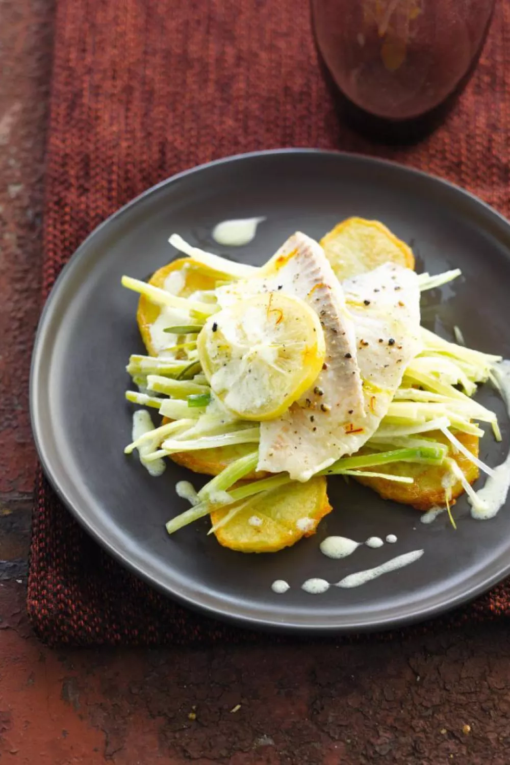 Zachte witvis met gekonfijte citroen en romige prei is een licht, geurend hoofdgerecht vol mediterrane tonen en frisse citrusnuances, perfect voor een lente of zomerse avond. De vis wordt zachtjes gegaard op in witte wijn en room gestoofde prei met saffraan en rozemarijn, terwijl goudbruine gebakken aardappelschijfjes voor knapperigheid zorgen. Eenvoudig stoven en bakken levert een feestelijk maar huiselijk gerecht.