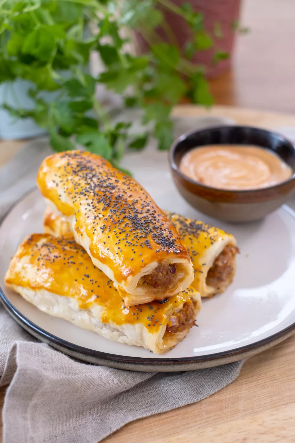 Hartige worstenbroodjes met kruidig lamsgehakt en pittige harissa, verpakt in knapperig bladerdeeg voor een sappige bite met ui, look, peterselie en een vleugje komijn. Ideaal als borrelsnack, feesthap of snelle weekendlunch die je makkelijk in de oven klaarmaakt. Serveer warm met een romige harissa mayonaise voor extra pit en gezellige sfeer.