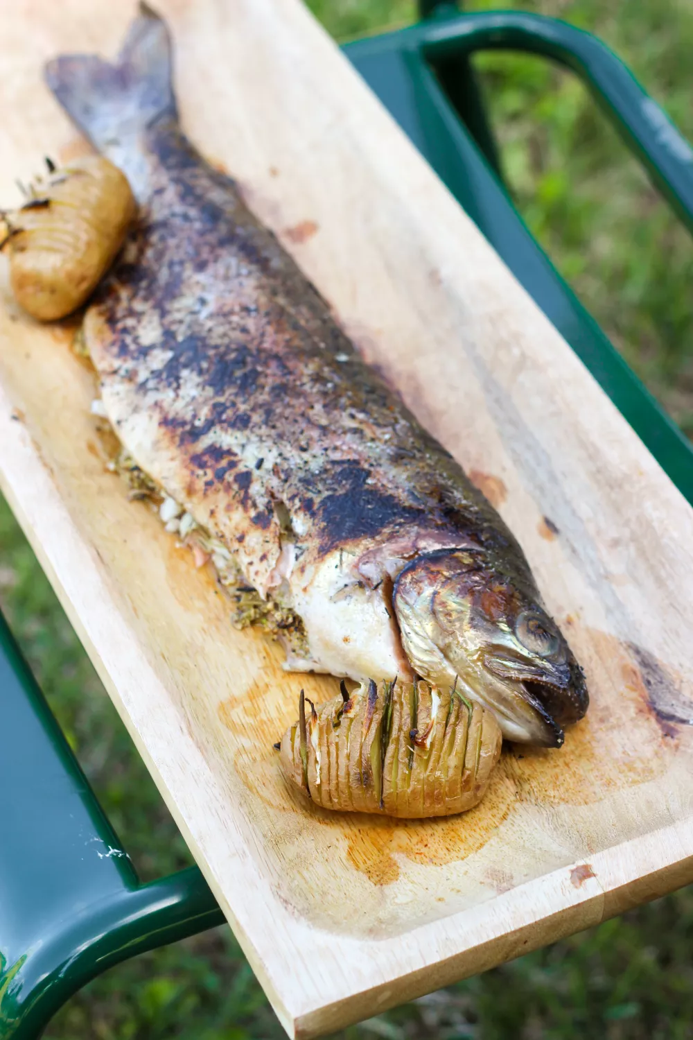 Zomerse zalmforel met kruiden en geurige aardappeltjes van de barbecue: sappige vis gevuld met venkel, citroen, venkelzaad en vlierbloesembloesem en knapperige aardappelen met knoflook en rozemarijn. De bereiding combineert zacht garen op de barbecue met een licht afgebrand randje voor rokerige diepte. Ideaal als feestelijk visgerecht bij een zomeravond met vrienden of voor een speciale lentemaaltijd.