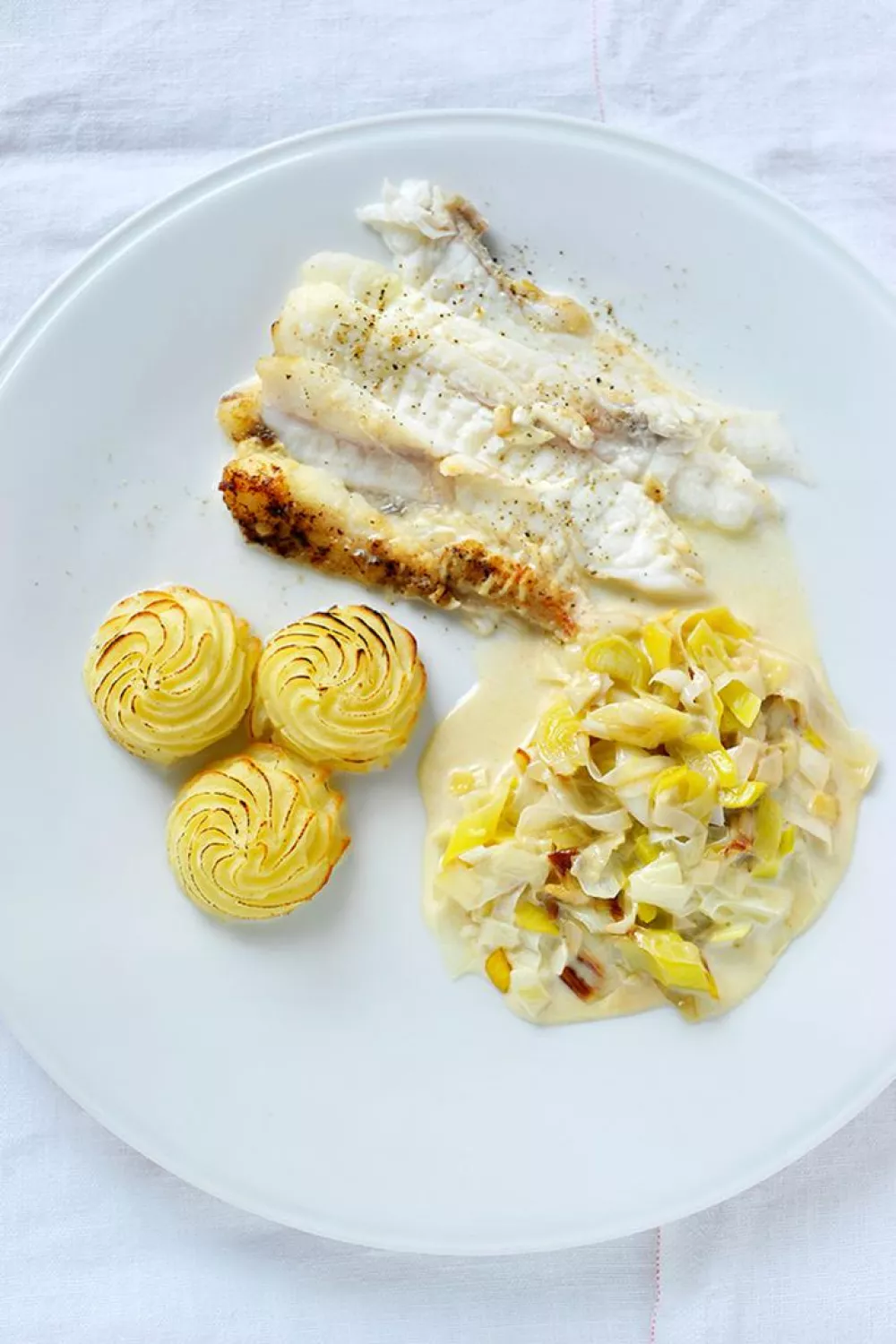 Zeeduivel met stoofprei en pommes duchesses