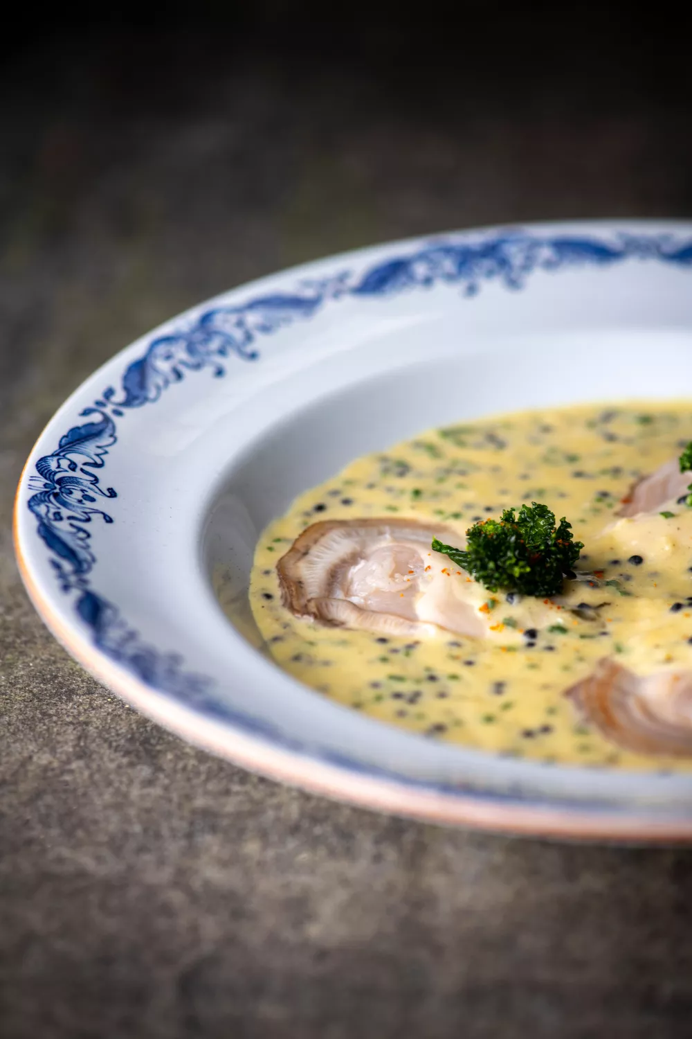 Zeeuwse platte oesters met beurre blanc van gerookte boter en haringeitjes
