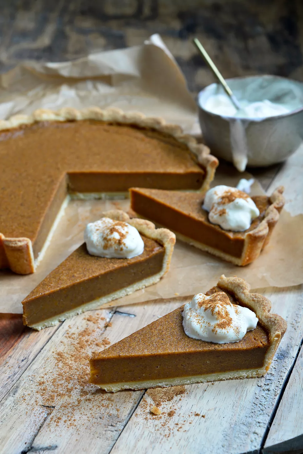 Werk de zoete aardappeltaart af met slagroom en wat kaneel.