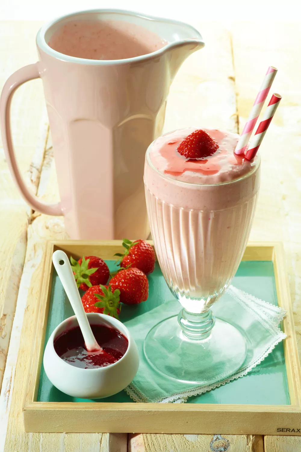Aardbeienmilkshake met siroop