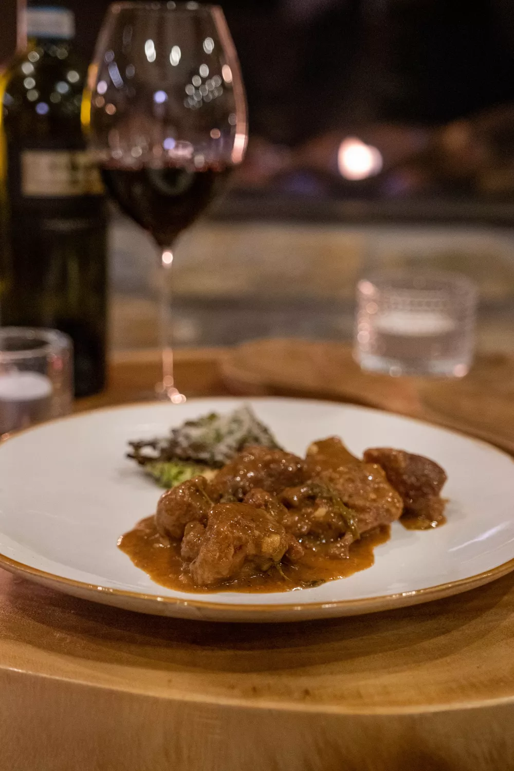 Zachte lamsstoverij met Italiaanse flair waarin krokant gebakken lamsbout langzaam suddert in witte wijn en kalfsfond tot een rijke hartige saus met ansjovis en nduja als smaakmakers. Erbij gegrilde en gestoofde savooikool gevuld met romige robiola geeft frisse textuur en mediterrane kruiden zoals rozemarijn, salie en citroentijm zorgen voor aromatische diepte. Perfect voor een winterse familiemaaltijd of een feestelijk diner waarbij langzaam garen en eenvoudige grilltechnieken samenkomen.