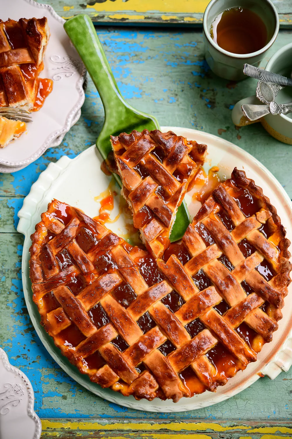 Deze klassieke abrikozenvlaai combineert een luchtig gistdeeg met zoete, frisse abrikozenconfituur voor een zacht en fruitig gebak dat uitnodigt bij koffie of thee. Het deeg wordt gekneed, rustig laten rijzen en uitgerold tot een dunne bodem waarna reepjes in een ruitpatroon de vlaai afwerken voor een goudbruine korst uit de oven. Perfect voor zomerse picknicks of als feestelijk dessert in lente en zomer.
