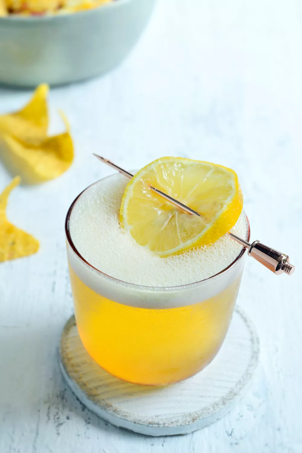 Een fluweelzachte Amaretto Sour die amandelzoete amaretto combineert met een scheut bourbon en fris citroensap, afgewerkt met luchtig eiwitschuim. Krachtig shaken geeft een koude, romige body die perfect tot zijn recht komt in een tumblerglas. Ideaal als elegante borrelcocktail of als zoetere afsluiter na het diner.