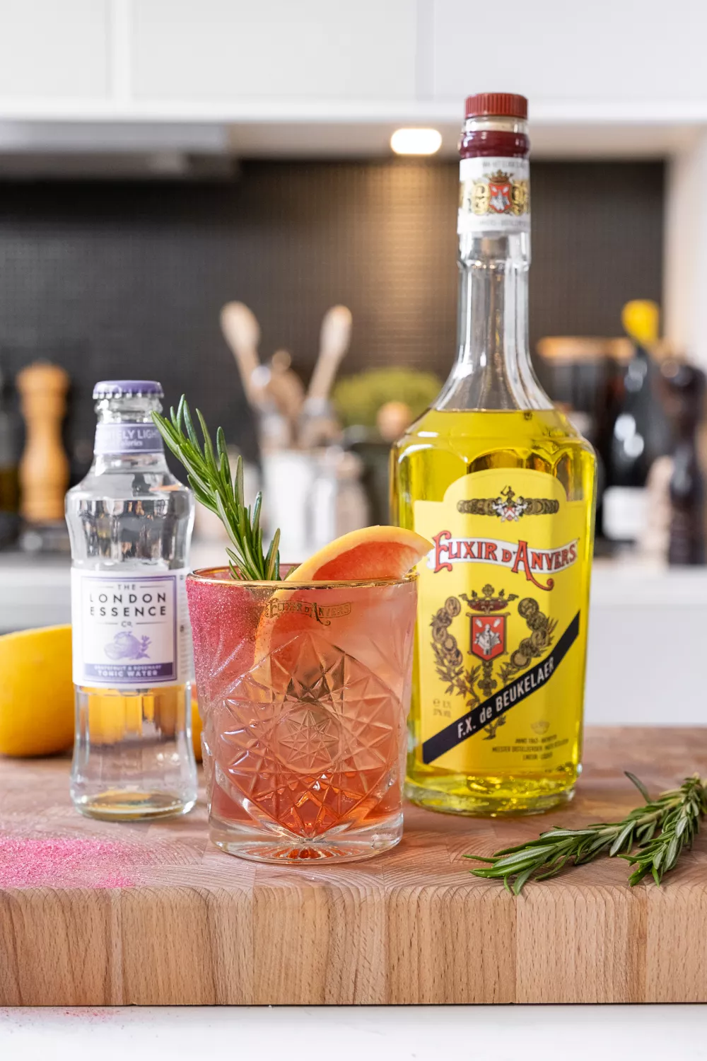 Built alle ingrediënten in een Elixir d’Anvers rocks glas, gevuld met ijsblokjes. Roer kort door en garneer met een schijfje verse grapefruit en takje rozemarijn.
