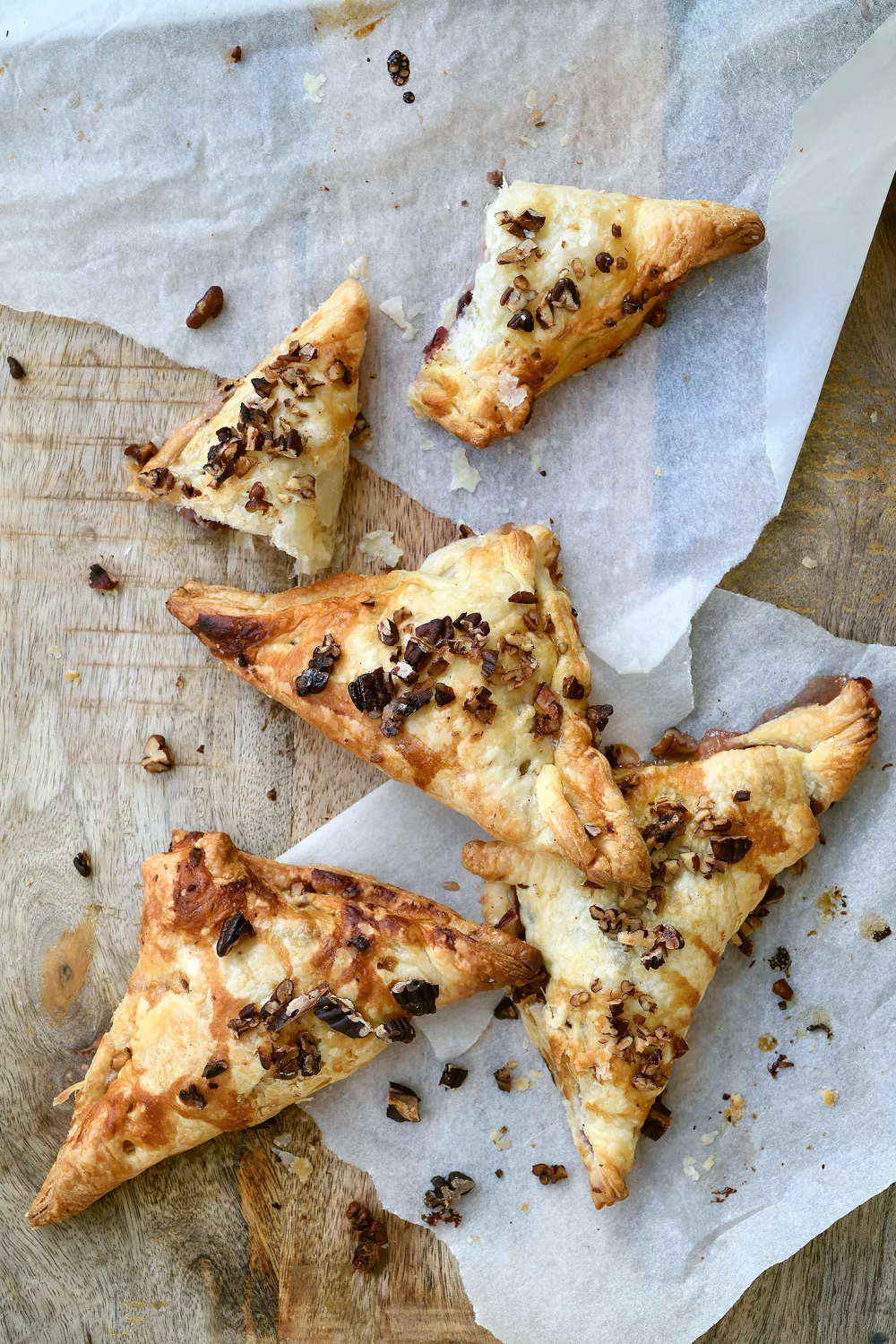 Besprenkel de appelflappen met de overgebleven honing en stukjes pecannoten.