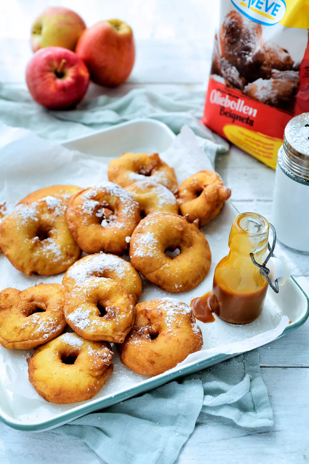 Knapperige appelbeignets met een fluweelzachte karamelsaus brengen warme, zoete smaken samen en vullen je keuken met een uitnodigende geur. Met oliebollenmix en een scheutje gist als basis, verse appelringen die door luchtig beslag worden gehaald en goudbruin gefrituurd, krijg je een heerlijk krokant contrast. Serveer ze warm met poedersuiker en de romige karamel als herfstig dessert, kermistraktatie of gezellige zoete snack.