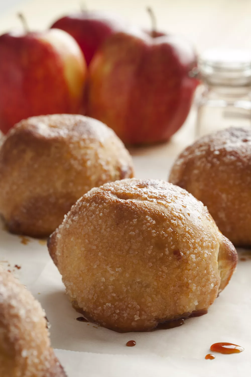 Werk de appelbollen af door er nog een beetje extra poedersuiker over te strooien.