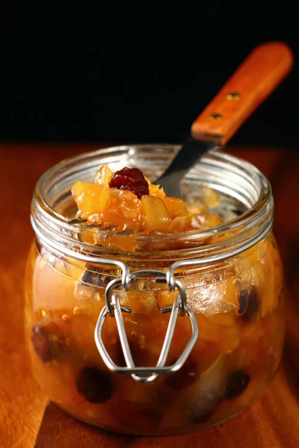 Haal de pan van het vuur en laat de chutney helemaal koud worden. Schep de chutney in gesteriliseerde potten. Laat de chutney minstens 2 – 3 maanden staan zodat de smaken zich goed kunnen ontwikkelen.