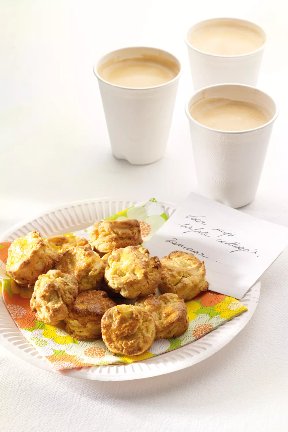Maak met een eetlepel kleine hoopjes op een bakplaat met bakpapier. Bak de koekjes gaar in 10 à 15 minuten.