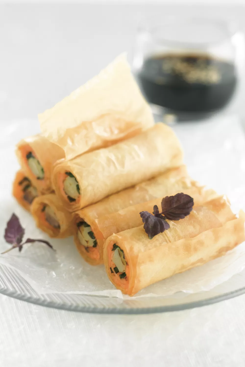 Witte asperges worden omwikkeld met gerookte zalm en krokant filodeeg tot een verfijnd aperitiefhapje vol textuur en umami. Een pittige toets van wasabi en een zoete sojasaus met bruine suiker brengen de smaken in balans, terwijl de asperges kort worden voorgekookt en de rolletjes gefrituurd tot goudbruin. Perfect als fingerfood voor een borrel in de lente of als elegant voorgerecht bij een feestelijke gelegenheid.
