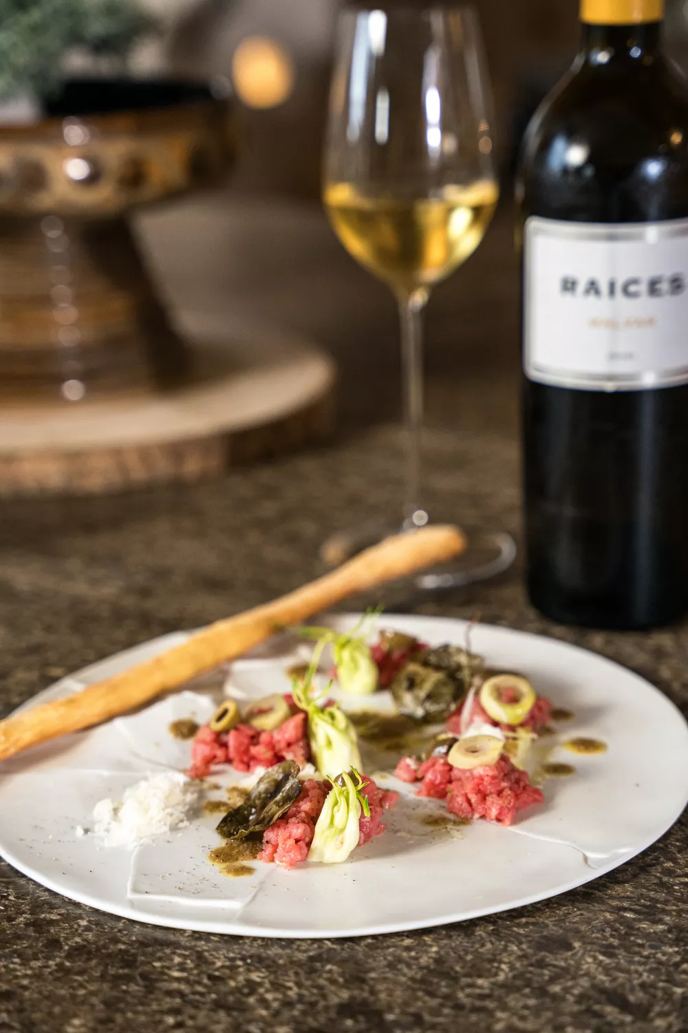 Een elegant Italiaans voorgerecht dat frisse tartaar van bistecca combineert met knapperige huisgemaakte grissini en een geurige saus van taggiasca olijven en tijm. Handgesneden vlees krijgt een frisse twist van limoen en extra vierge olijfolie, terwijl puntarelle en krokant gefrituurde kappertjesblaadjes voor bite en textuur zorgen. Perfect als zomers aperitief of verfijnde starter bij een gezellig diner.