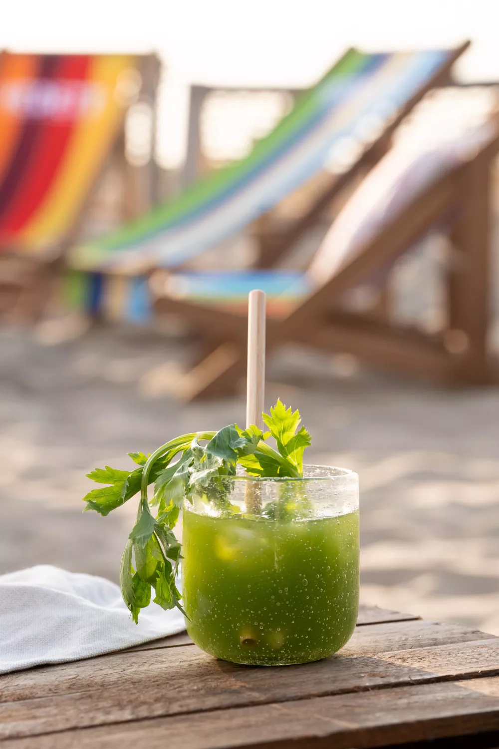 Verfris je zomerdag met deze tropische Beach Punch met gin, komkommer, meloen en frisse kruiden. Deze kleurrijke cocktail combineert het zachte zoet van Galia meloen met de pittige toets van bleekselder, munt en Thaise basilicum. Perfect om te serveren in een grote dispenser op een tuinfeest of strandparty!