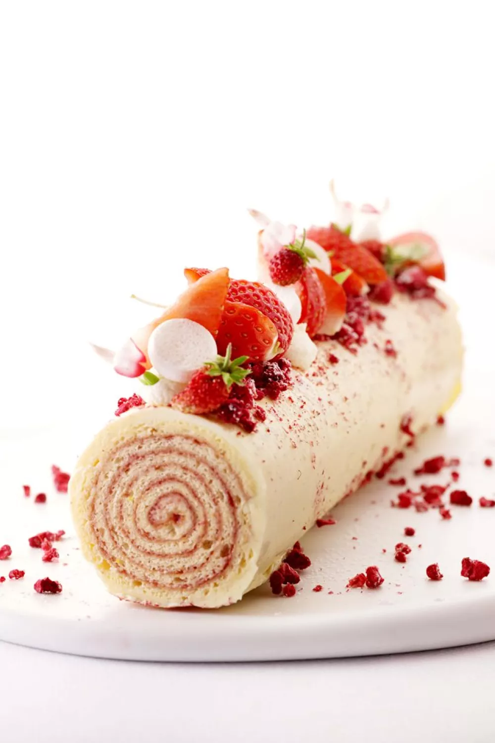 Deze luchtige biscuitrol met huisgemaakte aardbeienconfituur en romige botercrème combineert zachte vanillepudding, malse biscuit en frisse zomeraardbeien tot een feestelijk dessert. Met een korte oventijd en eenvoudig oprollen maak je snel een elegante roulade voor bij de koffie, een picknick of op de feesttafel.
