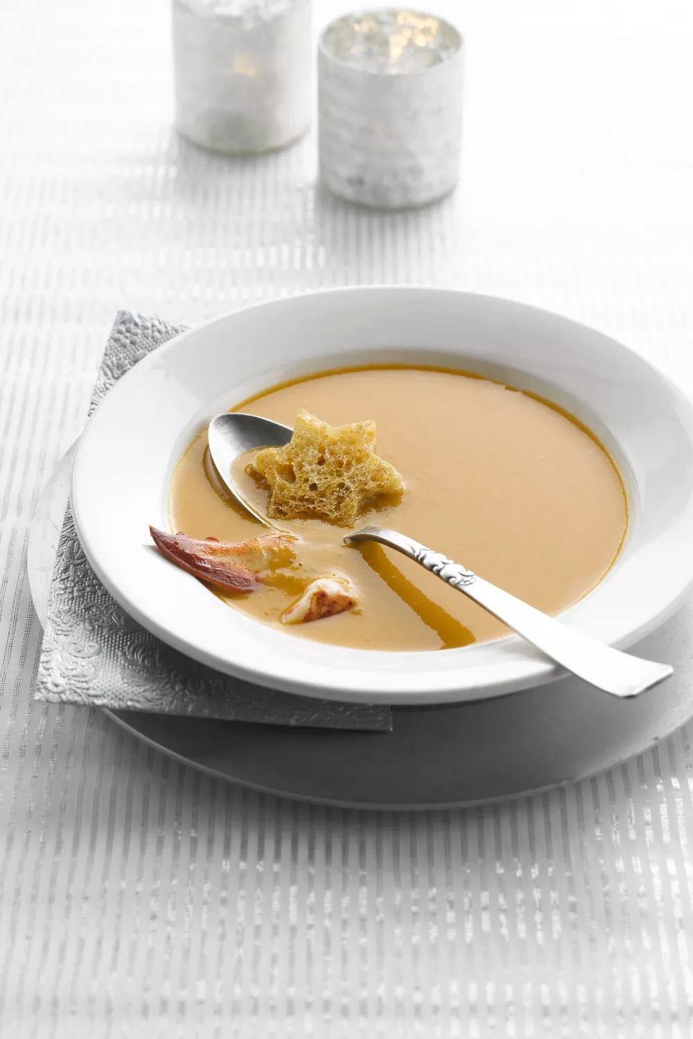 Romige kreeftenbisque met cognac en room brengt een luxueus zeevruchtenaroma naar je tafel, ideaal voor koude winteravonden of een feestelijk diner. De basis ontstaat door gebrande kreeftenschalen en visfumet zacht te laten trekken en daarna grondig te zeven voor een diepe, geconcentreerde bouillon. Fijn gesneden kreeftenvlees en een scheutje room maken de soep fluweelzacht en elegant.