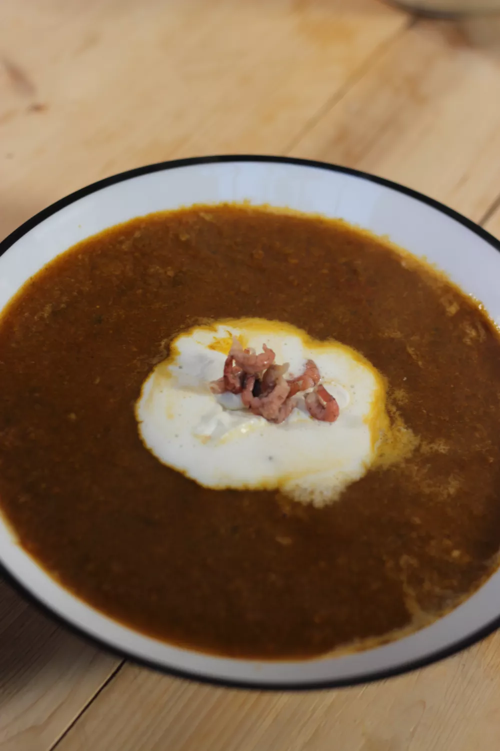 Romige Blankenbergse garnalensoep met een diepe geurige bouillon van garnalenkoppen, tomaat en venkel brengt de zilte smaak van de zee naar je tafel. De bereiding start met gestoofde groenten en een langzaam ingekookte garnalenfumet; daarna wordt de soep glad gepureerd en afgewerkt met cognac en opgeklopte room. Ideaal als feestelijk voorgerecht of verwarmend herfst en wintergerecht.