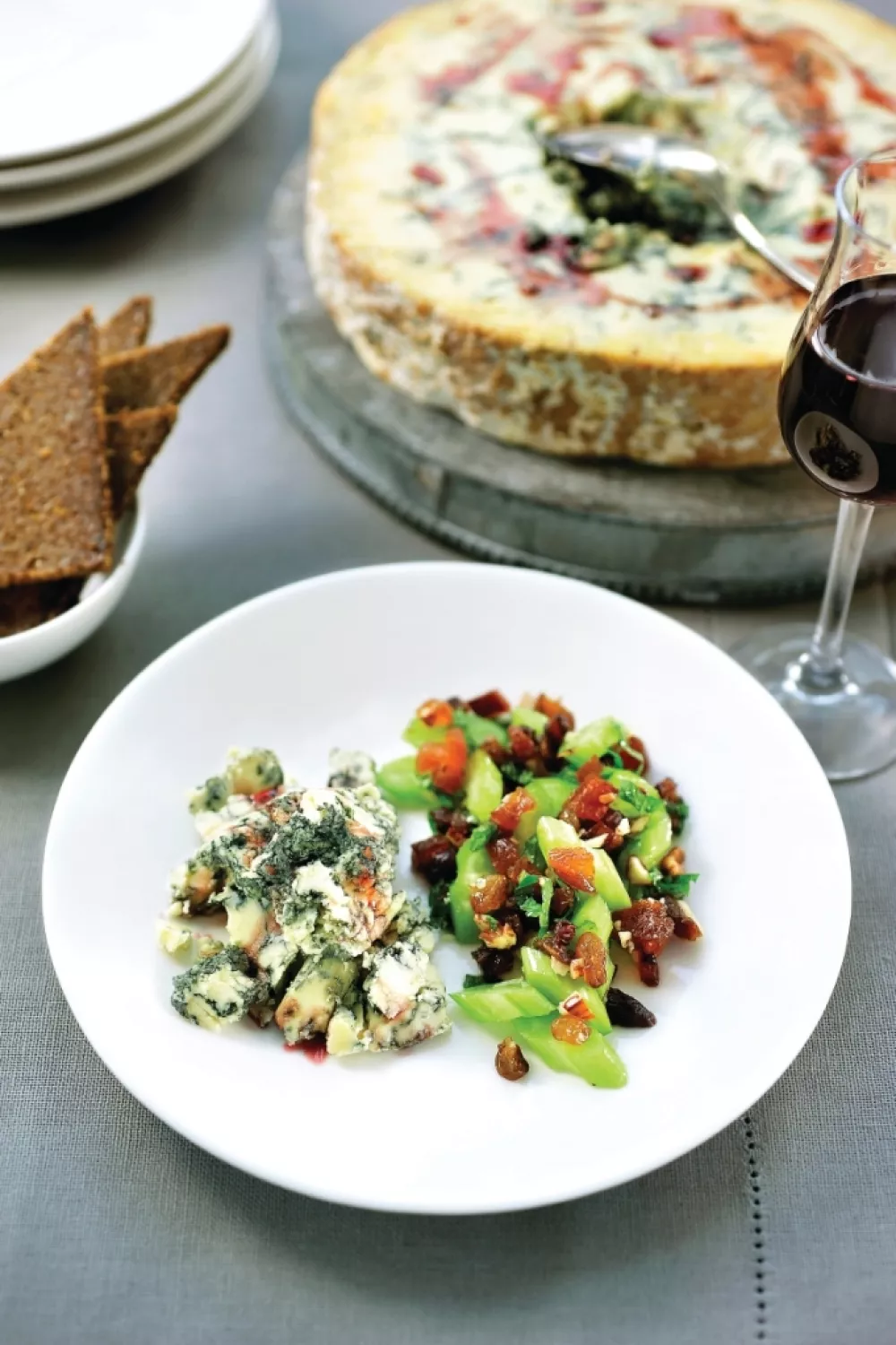 Zachte, kruimelige blauwe Stilton krijgt door een scheut Tawny port een rijke zoete twist die mooi afsteekt tegen een fris knapperig slaatje van selderij, gedroogde abrikozen en walnoten. Dit eenvoudige borrelgerecht of feestelijk voorgerecht brengt hartige diepgang en fruitige accenten en is snel te bereiden door de kaas te marineren en de salade kort te mengen. Serveer met roggebrood en een glaasje port voor een warme herfst of winterse sfeer.